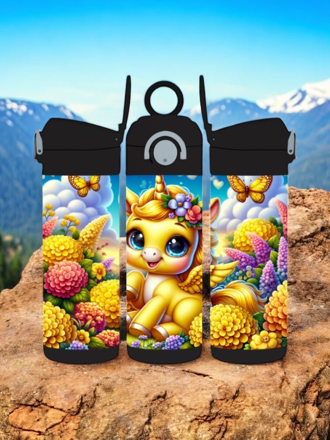 12oz kids Stainless steel water bottles - Yellow Unicorn