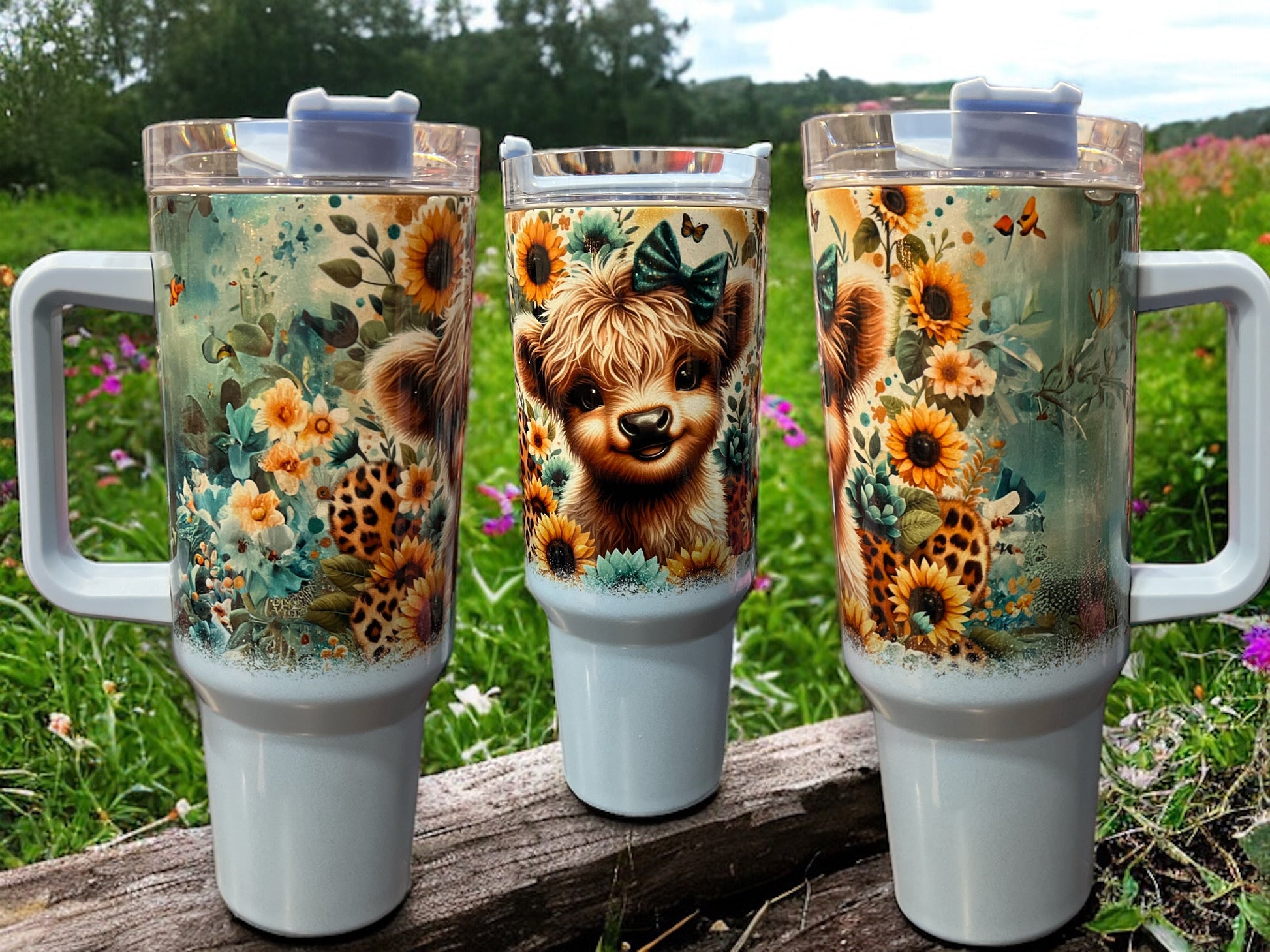 40oz Stanley Style Thirst Quencher Tumblers -cute cos sunflowers blue/white holographic sparkle